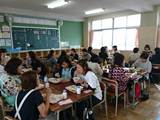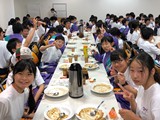 学校では、PTAの方が中心に教室を使って給食試食会を行いました。学校栄養職員の方から、食事の大切さと学校給食についてのお話を聞き、普段生徒が食べている給食を保護者の方たちが食べていきました。