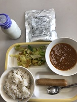 今日の給食は、麦ごはん、レトルトカレー、フランクフルト、福神和えでした。今日は生徒に、あま市の災害時備蓄用乾パンを持ち帰らせています。その関係もあり、レトルトカレーが給食として出ました。実際に被災したときに、このカレーを食べたらどんな気持ちになるかと思いながら食べました。きっと涙が止まらないのではないかと思います。あたりまえの中にあるものに目を凝らす。様々な場所で生きてくるように思います。今日も本当においしかったです。ありがとうございました。ごちそうさまでした。