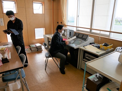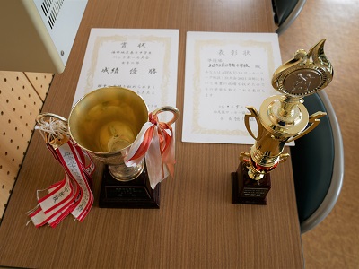 まず、はじめにハンドボール部とサッカー部の伝達表彰を行いました。