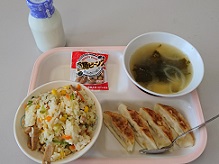今日の給食は、チャーハン(ごはん)、牛乳、ぎょうざ、わかめスープ、黒糖大豆でした。中華料理のはずれは考えにくいという感覚をもっています。ですから、おいしいに決まっているんです。そして、やっぱりおいしかったです。チャーハンは給食なのに、焼き豚がはいっていて、いい意味でショックを受けました。ぎょうざは豚肉と鶏肉、そしてキャベツが入っていて、ボリューム感がありました。わかめスープは箸休めには最高な一品で、これまた素晴らしかったです。最後に黒糖大豆、牛乳と口で合わせるとびっくりするぐらいおいしさが増します。次回、黒糖大豆が出たときにはぜひお試しください。今日の給食も本当においしかったです。ありがとうございました。ごちそうさまでした。