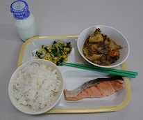 今日の給食は、ごはん、牛乳、鮭の塩焼き、肉じゃが、和風サラダでした。肉じゃがは、じゃがいものしっかりとした存在感に見た目からおいしそうでした。味がすべてに染み渡っており、見た目以上においしかったです。鮭の塩焼きが、肉じゃがとセットで出されては、ごはんの配分が分からなくなって、おかわりしても当然な感じがしました。それほどまでにおいしかったです。和風サラダはホウレンソウが入っていて、なんか元気が出るサラダでした。今日も本当においしい給食ありがとうございました。ごちそうさまでした。