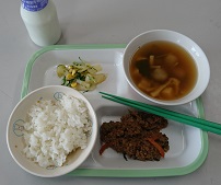 今日の給食は、あまっこ丼(ごはん)、牛乳、水菜の和え物、愛知のつみれ汁でした。今日の給食はどこから感想を書けばいいのか困ります。とりあえず、気になるのは、あまっこ丼でしょうか。あまっこ丼は、H29の「子どもが野菜をおいしくたくさん食べるレシピコンテスト」の入賞作品です。あま市や海部地区で多くとれる小松菜やれんこんを使った料理で、あま市の小学生が考えたそうです。れんこんのシャキシャキした食感と、豚肉と味噌のコラボレーションが信じられない旨味を出していました。ごはんがいつもの倍はいりそうな危険性を感じる一品でした。
