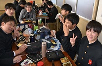 教員の作ってきたお弁当をみんなで覗き込んで、蓋が開いたときに自然と拍手が起こる学級や、生徒同士で見合ってお互いを褒め合う学級がありました。なかには、とてもユニークなお弁当を作ってくる生徒や、自慢げにみんなに自分のお弁当を披露している生徒がいて、いつもの給食の時間とは違い、楽しそうに食事をしている姿が印象的でした。また、最後に感想を書いた内容で、給食を作ってくれる人や、保護者への感謝が綴られている生徒がいて、本当に温かなお弁当の日となりました。朝4時頃から起きて作ってきた生徒がいたそうです。本当に保護者の方には、お世話になりました。今後も甚目寺南中学校の教育活動にご協力お願いします。