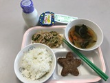 今日の給食は、ごはん、牛乳、お星様ハンバーグ、春雨サラダ、七夕汁、七夕ゼリーでした。今日は、七夕汁の中の具材について話します。にんじんとかまぼこが星の形に型取ってあります。なんか食べるのがかわいそうになるぐらいです。また、七夕ゼリーの中にも星形の寒天のようなものがありました。見た目でも楽しませてくれて本当に感謝します。味もおいしく、大満足です。今日も本当にありがとうございました。
