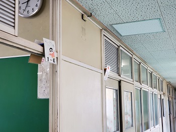 保健委員会が考案した「トオル君」が天窓に登場しました。