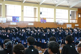 送辞では、後輩がどういう思いでいたのかが、よく伝わりました。そして、3年生のみんなが築き上げてきたものを、引き継ごうとする覚悟も聞けました。本校の教員としても嬉しい言葉でした。