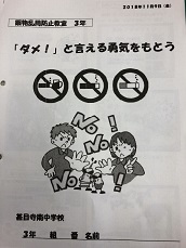 5時間目と6時間目を使って、3年生に薬物乱用防止教室が行われました。今年度は、7月5日、10日に1・2年生に対して薬物乱用防止教室が行われています。3年生は毎年1回ずつこの講座を受けてきているので、3回目となります。「薬物に手を出しちゃだめだよ。」と言うのは簡単です。危険性を教えると同時に、断り方を教えることが大切です。3年生は断る方法をいくつか勉強しました。とにかく、逃げるが勝ちです。相手を逆なでしないように、そっと消えていく方法を、生徒たちに自宅で聞いてみてください。その講座の中で行われた本校職員の劇について聞いてもらっても話が盛り上がるかもしれません。人生の中で薬物に染まる生徒がいませんように。そんなことを願いながら、一生懸命演じていましたから。