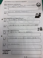 講座が終わってからは、各教室に戻って振り返りの時間です。学級では、自分たちで役割を決めて薬物の勧誘を断るロールプレイングが行われていました。そのあと、感想を書き、絶対に手を出しません。を強く書かれた文字を見ることができました。