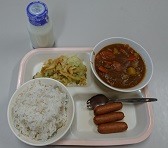 今日の給食は、チキンカレー(麦ごはん)、牛乳、ボイルウインナー、ごぶ漬け和えでした。少し辛みがあり、甘みも感じるカレーのルーに、野菜がゴロゴロ入っていておいしかったです。そして、ボイルウインナーです。噛むとCMみたいなパリッという音ととも中からジュワッと肉汁が溢れます。これがカレーによく合ってごはんが進みます。今日のモグモグタイムも最高でした。本当においしかったです。ありがとうございました。ごちそうさまでした。