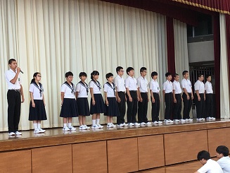 先週、夏の大会前に部活動壮行会がありました。それぞれの部活のキャプテンが大会への決意を語りました。教頭先生の前での宣誓は胸を打ちました。後輩の前で立派な姿をみせてくれました。