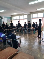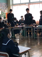 廊下を歩いていると、珍しい隊形で授業をしているクラスにバッタリ遭遇しました。道徳の時間です。先生がみんなの中に入って、意見を交換し合っています。また、全員が立って、同じ意見が出たら、座っていく方法をとっていたことで、全員参加がとっても上手に行われていた授業でした。