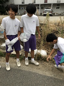 本校で何年目かのマイタウンゴミゼロ運動が今日の午後行われました。環境委員長から「自分たちの住む街をきれいにしましょう。」と話があり、割り振られた地域でゴミを拾いました。