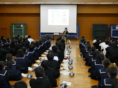 本日6時間目に、1年生は卓球場で情報モラル教室を行いました。