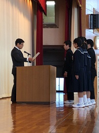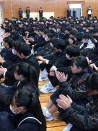 23日の朝礼では、校長先生から「目的と目標」についてお話がありました。「的」はひとつ。「標」はしるべであるため、いくつか設定し「目的」を達成するために立てるもの。これからの生活で、自分に合った目的と目標を立て、充実した毎日を送ってほしいという内容のお話でした。他にも、たくさんの部活動表彰と文化表彰があり、温かい拍手に包まれ、冬休み前に甚目寺南中学校のすばらしい一面を見ることができて良かったです。
