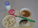 今日のごはんは、たけのこごはん、牛乳、鰆の香味焼き、刻みこんぶのすまし汁、ヨーグルトでした。今日はなんといっても、たけのこごはんと鰆の香味焼きの相性の良さです。口の中に広がる、たけのこごはんの濃いめに味付けされた鶏肉と油揚げ。そして、薄めに味付けされたごはん。その薄めの味付けのごはんと鰆、最高のハーモニーを奏でておりました。そのほかの料理もおいしかったです。ありがとうございました。