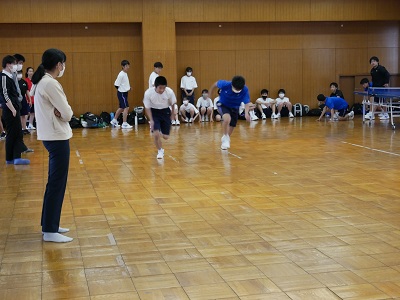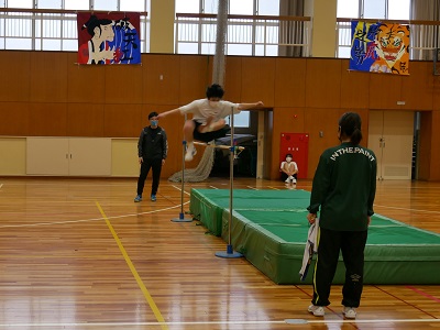 今日はあいにくの雨でしたが、体育館では走り高跳びが、卓球場では短距離走が練習を行いました。生徒たちは集中して取り組んでいました。