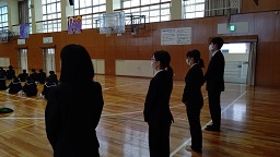 教師を目指す大学生による教育実習が今日で終わりを迎えました。今日までの2週間、悪戦苦闘しながら、毎日実習に臨んでいる姿に実習生を指導する先生をはじめ、多くの先生が、教師としての初心を思い出したことでしょう。生徒への発問や板書、分からない生徒への机間指導など、別の視点から眺めることにより、多くの先生にとっても学びの機会になったことと思います。実習生からは、「この経験を生かして先生になったら、がんばります」との言葉がありました。実習生の4月からの学校現場での活躍を期待しています。                                                   「今日も心に笑顔です。」