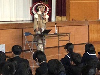 5時間目の人権講話では、被災者支援センターの榊原さんといわき市より愛知へ避難されている吉田さん(インディアンのテント屋さん)をお迎えして講話を行っていただきました。
