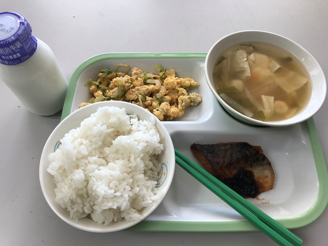今日の給食は、衣笠丼(ごはん)、牛乳、さばの西京焼き、ゆばのすまし汁でした。全国郷土料理の日「京都府」が今日のメインでした。郷土料理というのは、その地域の特産物を材料にしたり、伝統的な調理法を用いたりするものです。日本の料理がいかに手をかけられて作られているかがわかります。今日のさばはまだ脂がのっていて、ごはんと絡むとおいしすぎて何も言えなくなりました。ゆばのすまし汁は、薄味で京都を思わせる一品でした。今日も本当においしかったです。ありがとうございます。