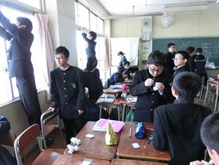 昭和の時代から、窓際にかけられ晴れを願う『てるてる坊主』。彼らは本校の生徒の願いを叶えてくれるのでしょうか?教室のカーテンレールにひとつずつかけられていくその姿に、2年生の野外学習にかける想いを感じます。担任の先生がたまらず撮った数枚の写真。担任の愛情を感じずにはいられません。教室では、初日の郡上八幡散策の計画を仲間と決めています。どこで飛騨牛コロッケを食べようか?宗祇水ってどこだ?郡上八幡城いきたいな。など、これから始まる野外学習を今から楽しんでます。もちろん雨が降らないことが一番ですが、きっと雨が降ったとしても、最高の3日間を過ごしてくれると思います。