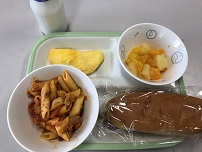 今日の給食は、米粉パン、牛乳、オムレツ、ペンネトマトソース、フルーツ和えでした。ペンネトマトソースとパン、オムレツのこのトリオは、一口ずつ順番に食べると、永遠に食べていられるんじゃないかと思うぐらい合います。最後のフルーツ和えまで、あっという間でした。今日もおいしかったです。本当にありがとうございました。ごちそうさまでした。
