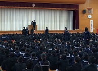 その後、校長先生からの話がありました。今日は、アンガーマネジメントという話です。先日校長先生が講演を聞きに行かれた内容から、生徒に分かりやすく話をされました。アンガーマネジメントを直訳すると、怒りを管理するという翻訳になります。どのように管理をするのか。まず、イライラは6秒我慢すれば消えていくこと。怒るということが、その人のためになるのか、怒ることで周りの人に迷惑にはならないか。そして、悲しませることにはならないかをよく考える必要があるということでした。また、アンガーマネジメントを言い換えると、後悔しないことと捉えてもいいと言うことでした。イライラしたときは、突発的にその感情をぶつけてしまいがちです。一度、その怒りと向き合う必要があるように思います。怒りをぶつけて後悔することのないようにしたいですね。