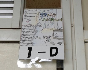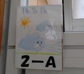 学校では、感染症予防のため、毎朝の健康観察を丁寧に行い、体調不良者に早期に気づくようにしています。また、写真の「とおる君」を教室の対角線に設置し、教室の換気に気をつけています。