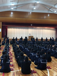 今日は後期最初の朝礼で新しい生徒会役員と学級委員の認証の様子の写真を載せておきます。全く関係のないことですが、体育館シューズの袋を全校生徒が右側に置いて座るという、みなさんが当たり前のようにするちょっとした行動が、今の南中の温かさにつながっているように感じました。