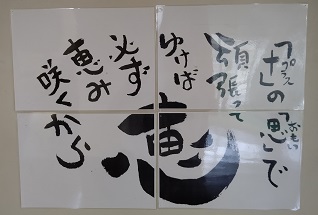 『+(プラス)の思いで、頑張ってゆけば必ず恵、咲くから』この言葉は、職員室前の廊下に掲示してある言葉です。「思」という字の上に「+(プラス)」をつけると、「恵」という字になります。みなさんも、これからもプラスの思いをもって、取り組んでいきましょう。