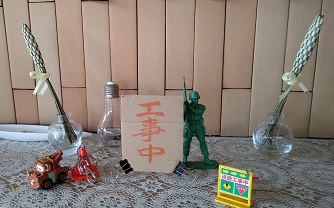 来賓玄関が、『工事中』です。明日は7月です。新しいお出迎えを楽しみにしていましょう。