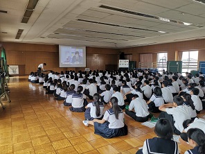 思春期講座では、まず生命の誕生について学びました。その後、デートDVを学びながら、性感染症の怖さを知ることができました。生徒の分かっているようでわかっていない部分を分かりやすく説明していただき、生徒もよく分かったようでした。