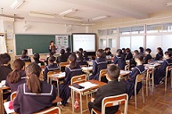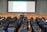 今日は1年生が福祉実践教室を行いました。以前からこの日のために、発達障碍講座、認知症講座や各クラスでの事前授業などを行ってきました。そして、今日が本番です。ゲストティーチャーを招き、ガイドヘルプ、高齢者疑似体験、車いす、手話、点字、要約筆記の6つの講座に分かれて体験を行いました。