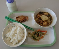今日の給食は、ごはん、牛乳、鶏肉の香味焼き、大根のそぼろ煮、三色和えでした。まずは三色和えです。三色…つい先日もお届けした緑色の水菜。赤が映えるにんじん。そして、白色のシャキシャキしたもやしの三色です。ごま油が絡んでいて、食欲が増しました。今日も間違えてごはんを食べてしまいました。サラダがおかずになってしまうほどおいしかったです。そして、サラダでごはんを食べたことを後悔するほどおいしい、鶏肉の香味焼きと大根のそぼろ煮。鶏肉に絡んだバジルは贅沢な感覚になりました。あと5枚はいけました。大根のそぼろ煮は食材がたくさん使われていて、栄養満点だったに違いありません。中でも、さやいんげんはいいアクセントになっていました。今日の給食も本当においしかったです。ありがとうございました。ごちそうさまでした。
