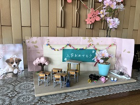 2階の正面玄関で今年も教頭の創作品が新入生を迎えていました。しかし、5月に入ってしまうことから、「もう時期でもないよね」と言って玄関の創作品を教頭が取り下げようとしていたので、HP上だけでも紹介しておきます。実は新入生のみなさんを3月の終わりから迎えてくれていました。1年生の掲示板も素敵な掲示になっていました。こちらに関しては、実際に学校に来たときに見てください。学校に来る楽しみの一つにしてくれたら嬉しいです。正面玄関が次はどう彩られるか楽しみです。みなさんも気にかけておいてくださいね。