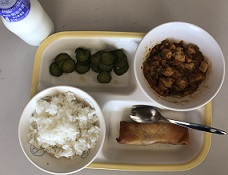 今日の給食は、ごはん、牛乳、マーボー豆腐、春巻、きゅうりの香り漬けでした。定番のマーボー豆腐。あるクラスの生徒は、今日の1時間目から楽しみにしていました。いろんな学級の先生が、食缶はからっぽです。と教えてくれました。人気メニューだったことが分かります。春巻もパリッとしていて中の具材が口にあふれてくる感じがたまりませんでした。味はもちろんおいしかったです。きゅうりの香り漬けも濃いめの味付けがごはんに合っていて素晴らしかったです。今日の給食も本当においしかったです。ありがとうございました。ごちそうさまでした。