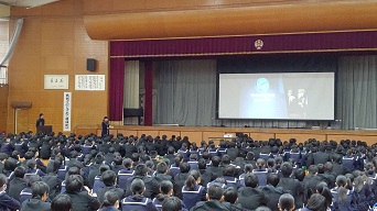 12月3日から、2年生の保健の授業でAEDの体験学習を海部東部消防署の方たちにしてもらっています。毎年行われるこの体験は、人の命を救う手立てを知る体験です。当然誰に対してもできるようにならなければなりませんが、まず自分の身近な人を救えるようになってほしいのです。目の前で倒れた人が、自分の命よりも大切だと思えるような人だったら、と想定してみましょう。「呼吸をしていない…」気が動転してなにをしていいのかわからないまま3分、4分と時間が過ぎていきます。その間にどんどんその人は死に近づいていきます。人命救助の方法を知っているだけで、助けられる命もあります。ですから、真剣に受講し忘れずにいてください。