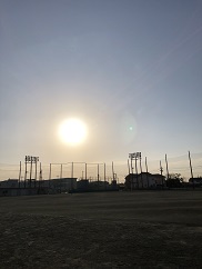 先生たちだけが見られる、誰もいない朝の校庭の景色を紹介します。とってもきれいな景色だと思いませんか。今は部活動の朝練習もなく、ゆったりとした朝の時間が学校にあります。通勤する先生たちは、職員室で一日の予定を確認したり、生徒の健康状態のチェックや欠席の連絡を受けたりして、みなさんが登校してくる準備を整えながら、朝の時間を過ごします。今日はその時間の合間に校庭に行く機会があり、何となく歩いていたら朝日がとてもきれいで、つい「パシャリ」と一枚写真を撮ってしまいました。