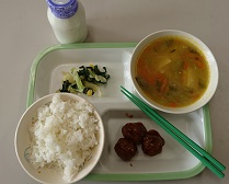 今日の給食は、ごはん、牛乳、肉団子、ホウレンソウの中華和え、ワンタンスープでした。肉団子は懐かしい味でした。小さな頃お弁当に入っていたミートなんとかというおかずを思い出しました。そして、ホウレンソウの中華和えは、ほんのり甘い味つけがされていていました。コーンの甘みと合わさっておいしかったです。今日のベストはワンタンスープです。スープだけでごはん3杯は食べられそうでした。本当に毎日毎日給食がおいしくて幸せです。今日の給食も本当においしかったです。ありがとうございました。ごちそうさまでした。