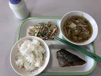 今日の給食は、ごはん、牛乳、ブリの照り焼き、友禅和え、れんこん団子汁でした。友禅和え…なんて美しい名前でしょうか。ごく細く切った野菜数種類を、彩りよく(友禅染めのように)取り合わせた和え物を言うそうです。卵の使われていないマヨネーズと合わさって、今日も本当においしかったです。ありがとうございました。ごちそうさまでした。