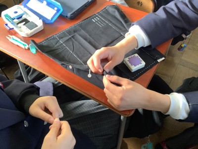 家庭科の授業をのぞいてみると、裁縫の実習が行われていました。