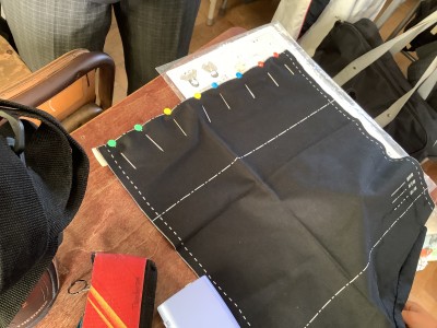今日の授業で取り組んでいたのは「まつり縫い」でした。器用に進めている生徒だけでなく、『見栄えが良くない!』『糸が絡まった!』と嘆く生徒もいました。しかし、完成に向けて少しずつですが前に進んでいます。
