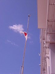 本校では朝から反旗を掲げ哀悼の意を表しています。また、地震の起こった午後2時46分には、全校で黙祷を捧げました。