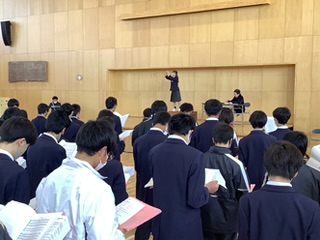 1、2年生は、3年生を送る会のために、照喜名先生のご指導を受けながら、合唱練習を行いました。