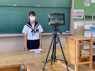 6限にzoomで海部地区中学校総合体育大会の壮行会を行いました。各部活動の部長は部員や応援してくれる友達、先生に向けて熱いメッセージを披露しました。各部の活躍に期待しています。