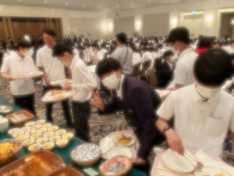 ホテルのビュッフェをとても美味しそうに食べています。