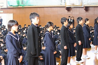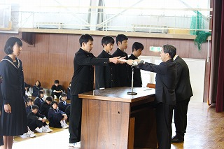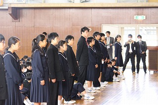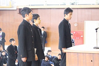 各部活の表彰が終わった後に生徒会役員の認証式が行われました。