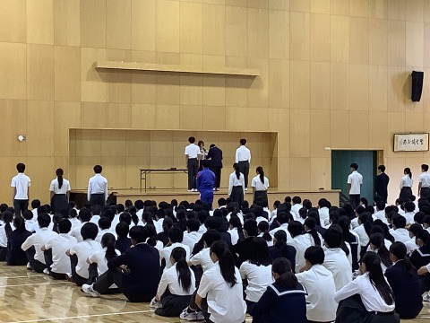 加えて、教育実習の先生が挨拶をしました。担当される教科は国語科と社会科です。貴重な研修期間、精一杯美和中学校で様々なことを経験し、教師としての自覚や専門性を伸ばしてください。