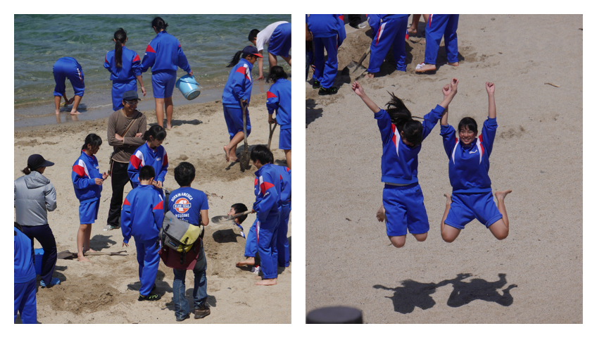 生徒たちは、砂の造形、若狭塗り箸を行っています。