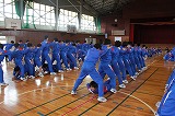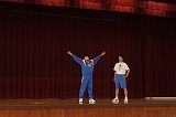 お笑い、空手の型、ダンス、吹奏楽の発表がありました。