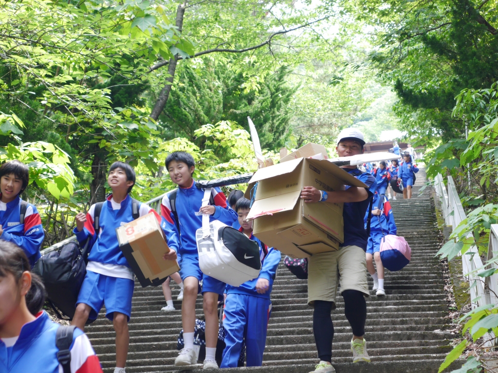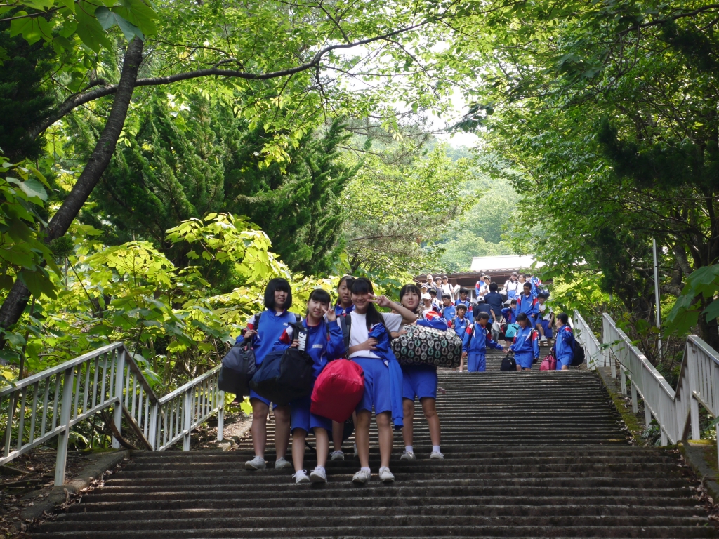 ほぼ予定通り、自然の家に到着しました!天気が心配されましたが、雨は降っておらず、天気は曇りです! 午後の活動は予定通りにできそうです。
